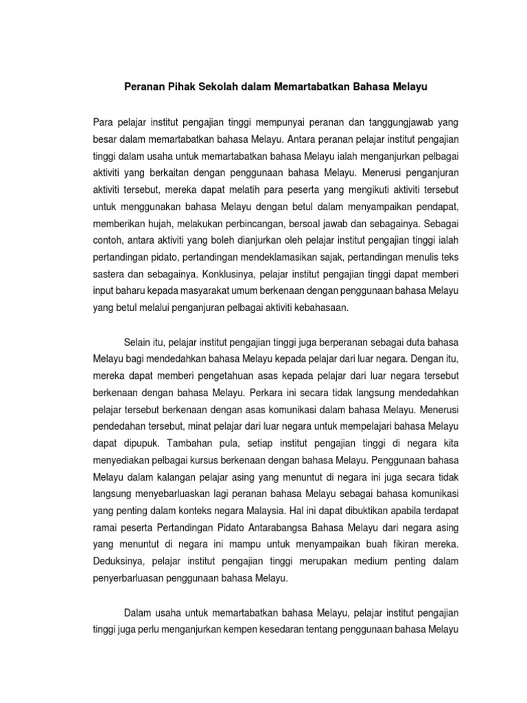 Peranan Pihak Sekolah Dalam Memartabatkan Bahasa Melayu Pdf